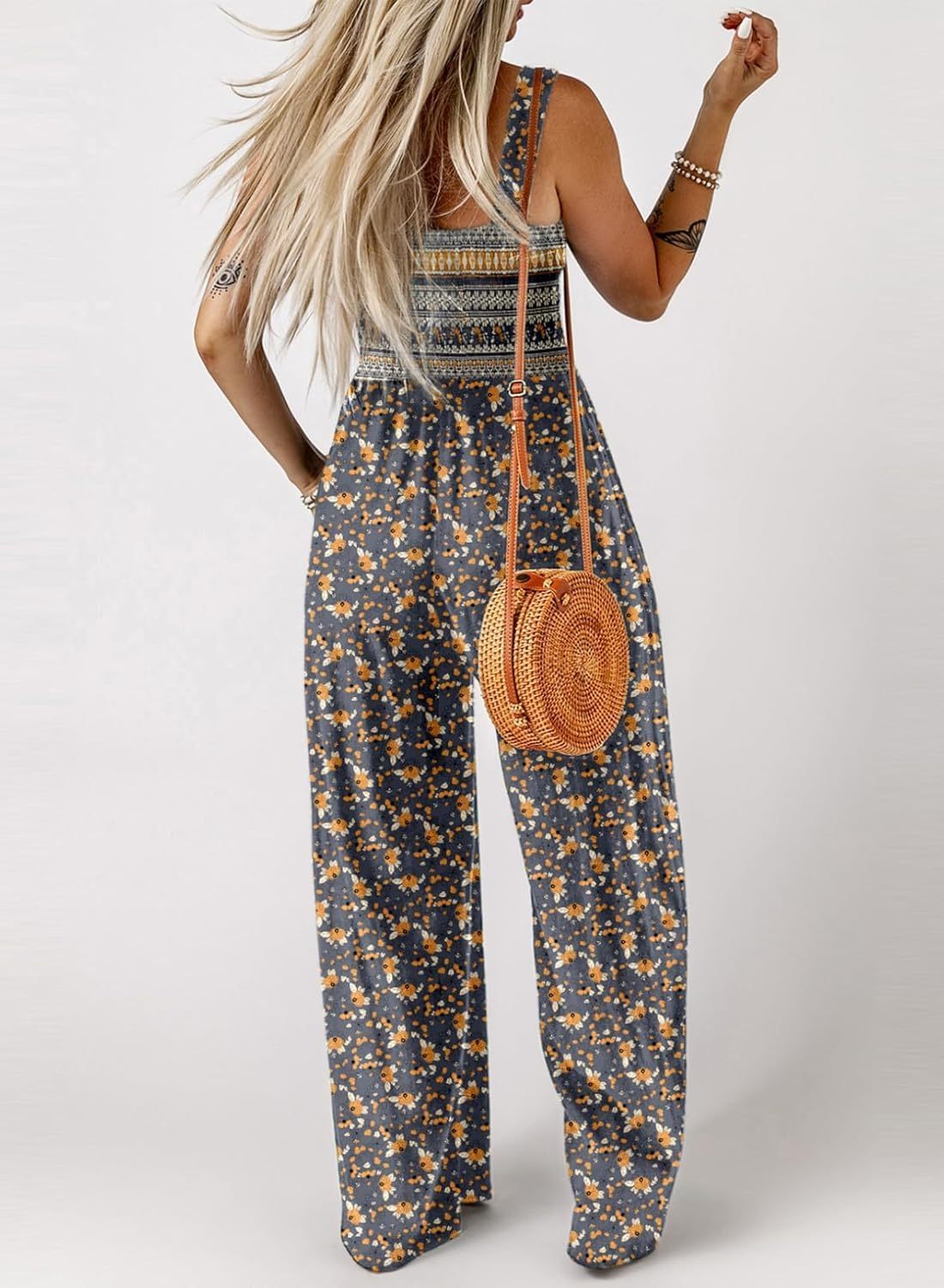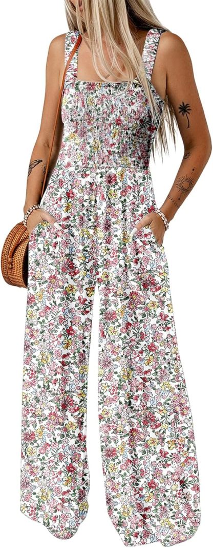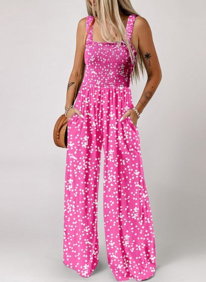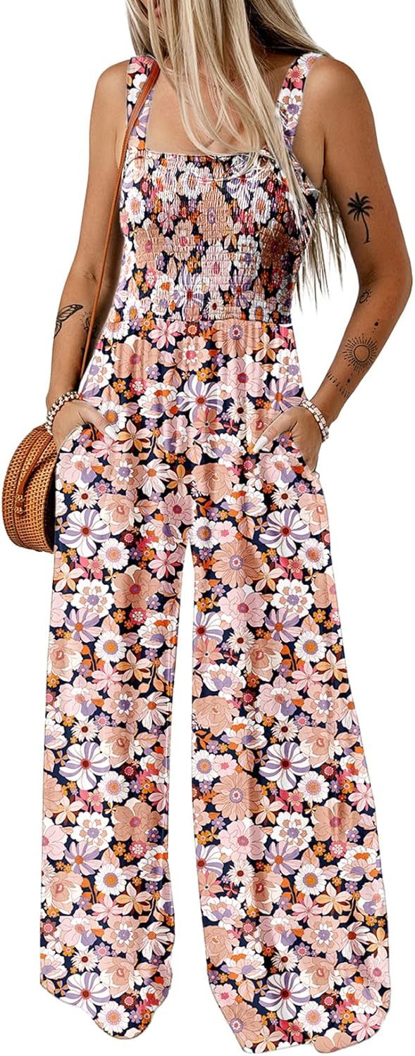 Womens Wide Leg One Piece Sleeveless Printed Jumpsuit Long Pant Rompers