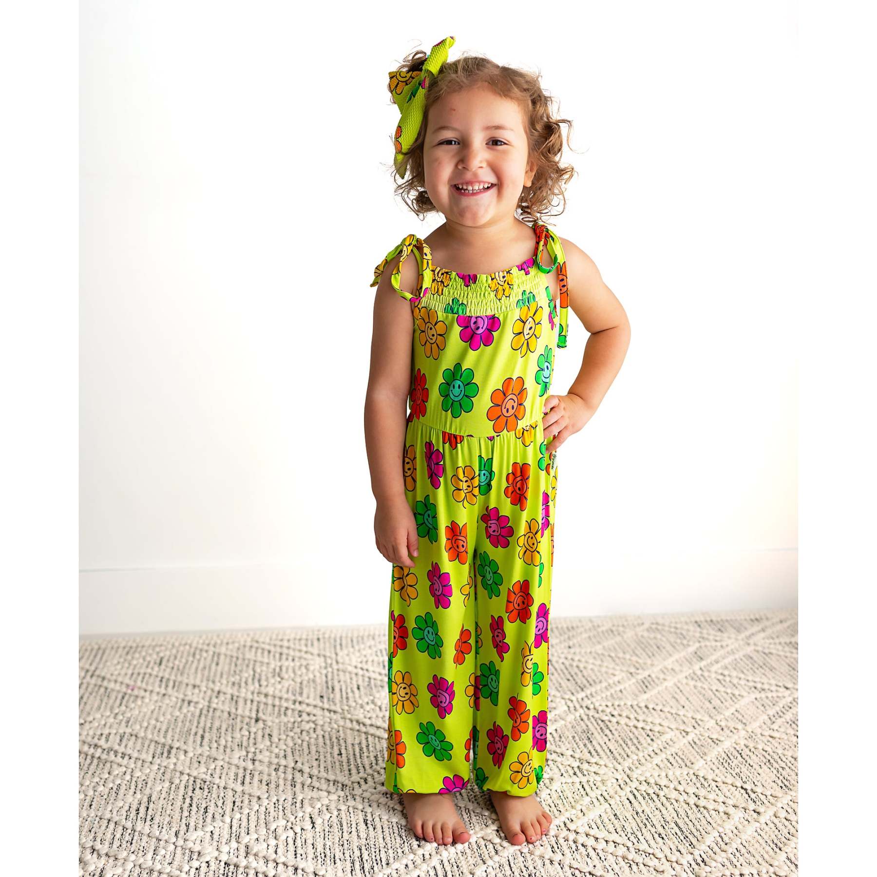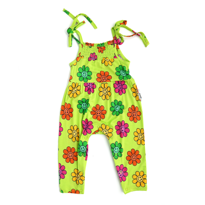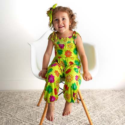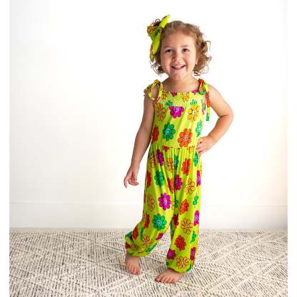 This jumpsuit is super soft, comfortable, and just adorable for summer. Featuring tie straps at the top, you will be able to adjust as baby grows, making this outfit last a long time! Sizes 6m-24m range has snaps in the legs for quick and easy diaper changes.