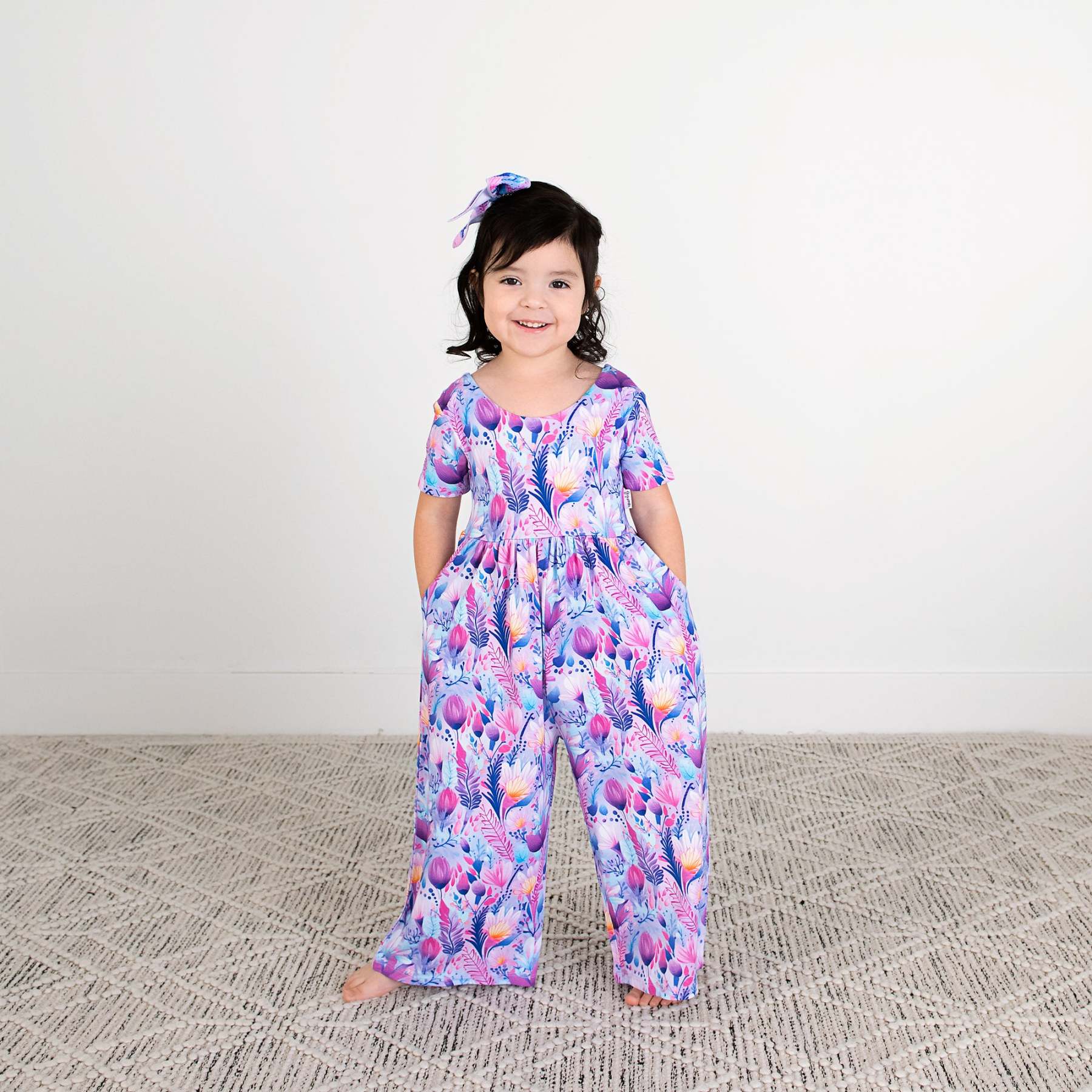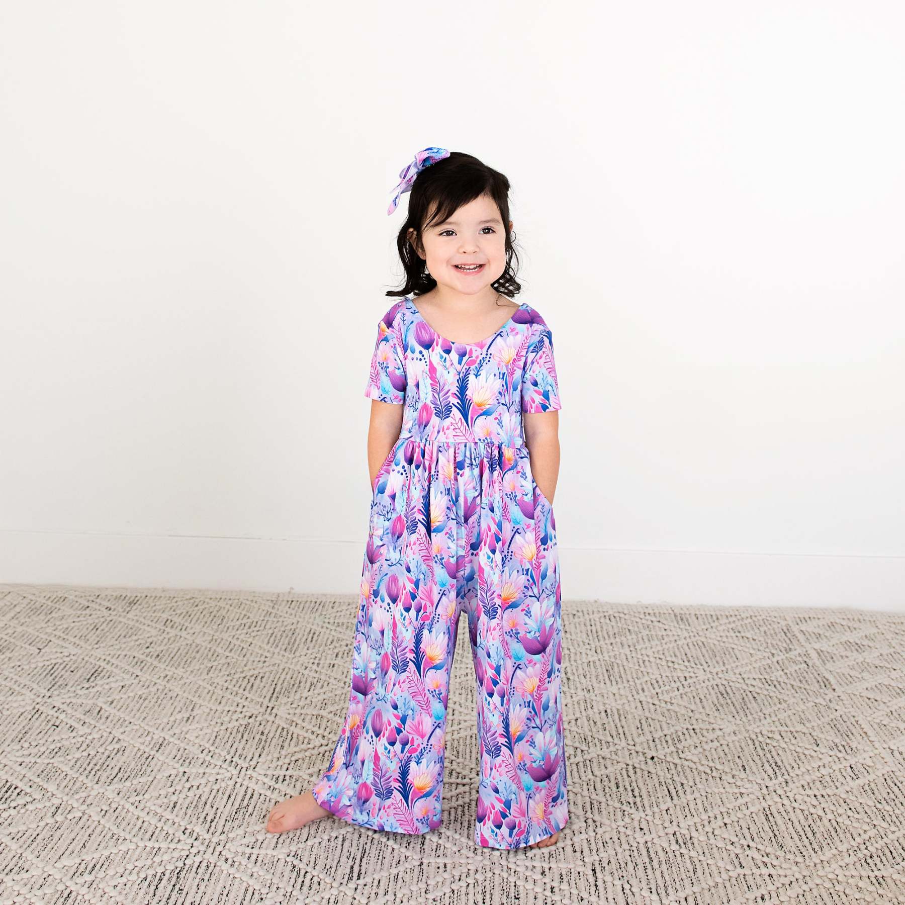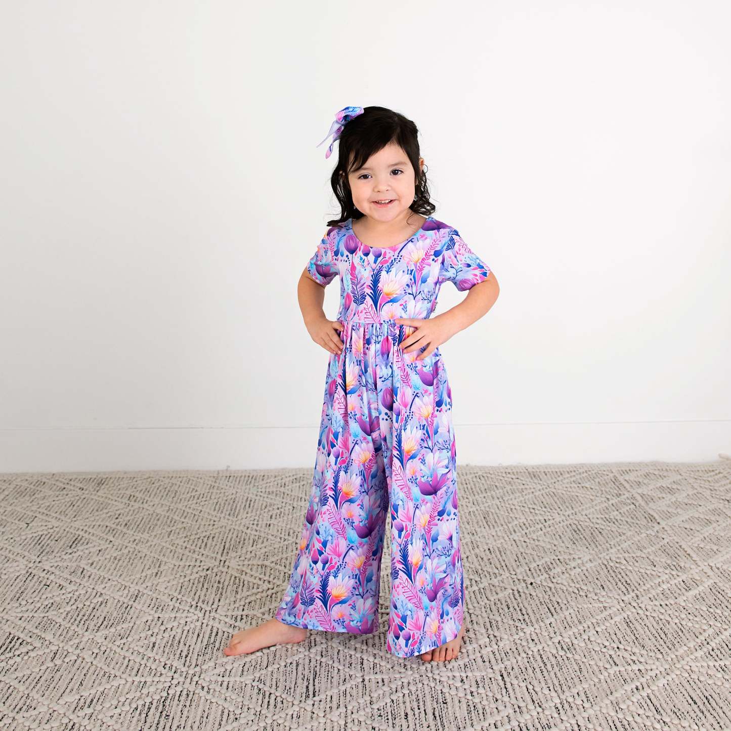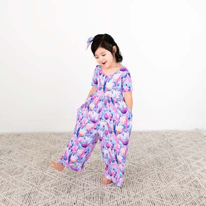 Your little one will love the easy comfort of this wide leg romper. Made from luxuriously soft and breathable bamboo viscose, it has the perfect amount of stretch for play and everyday wear. The wide leg fit gives it a relaxed, stylish look while still keeping it practical and comfy.