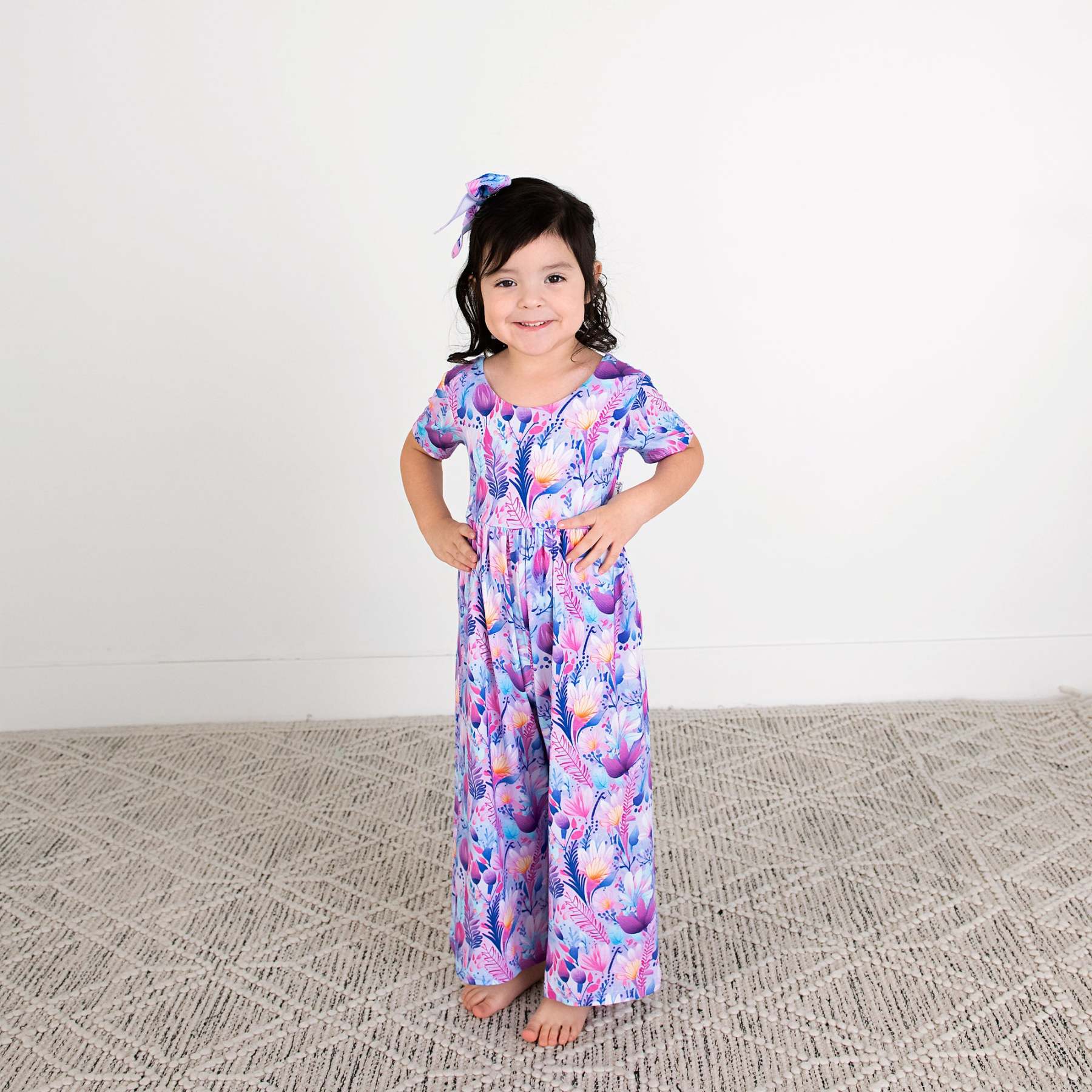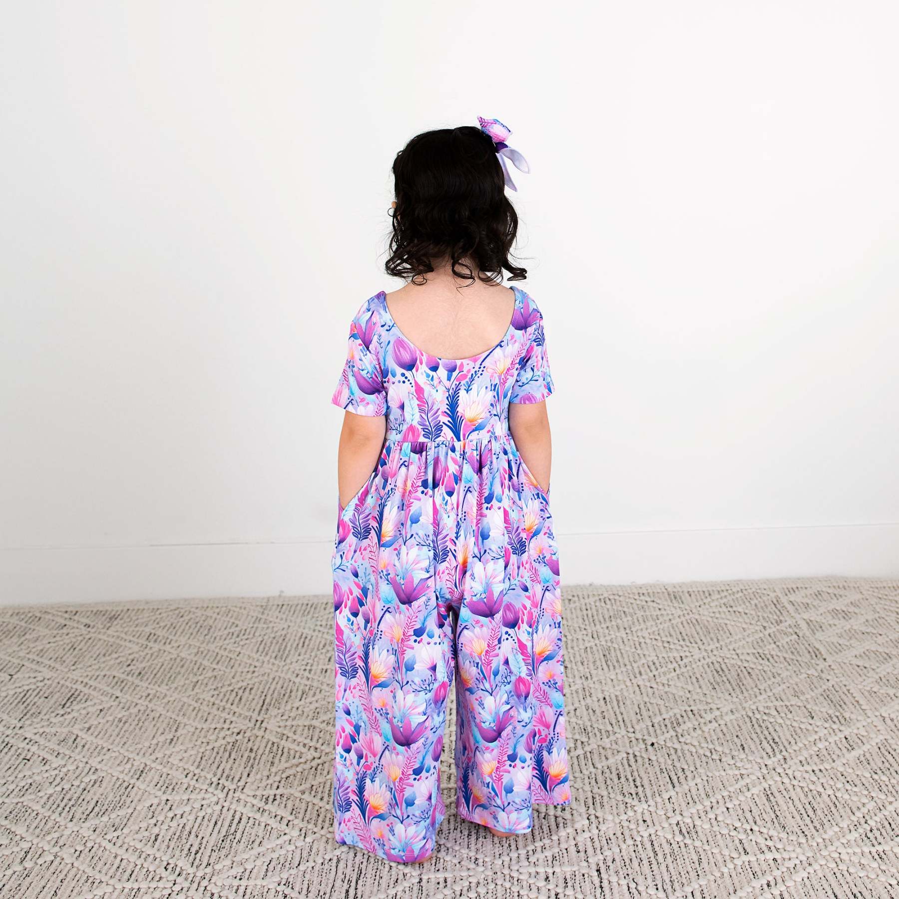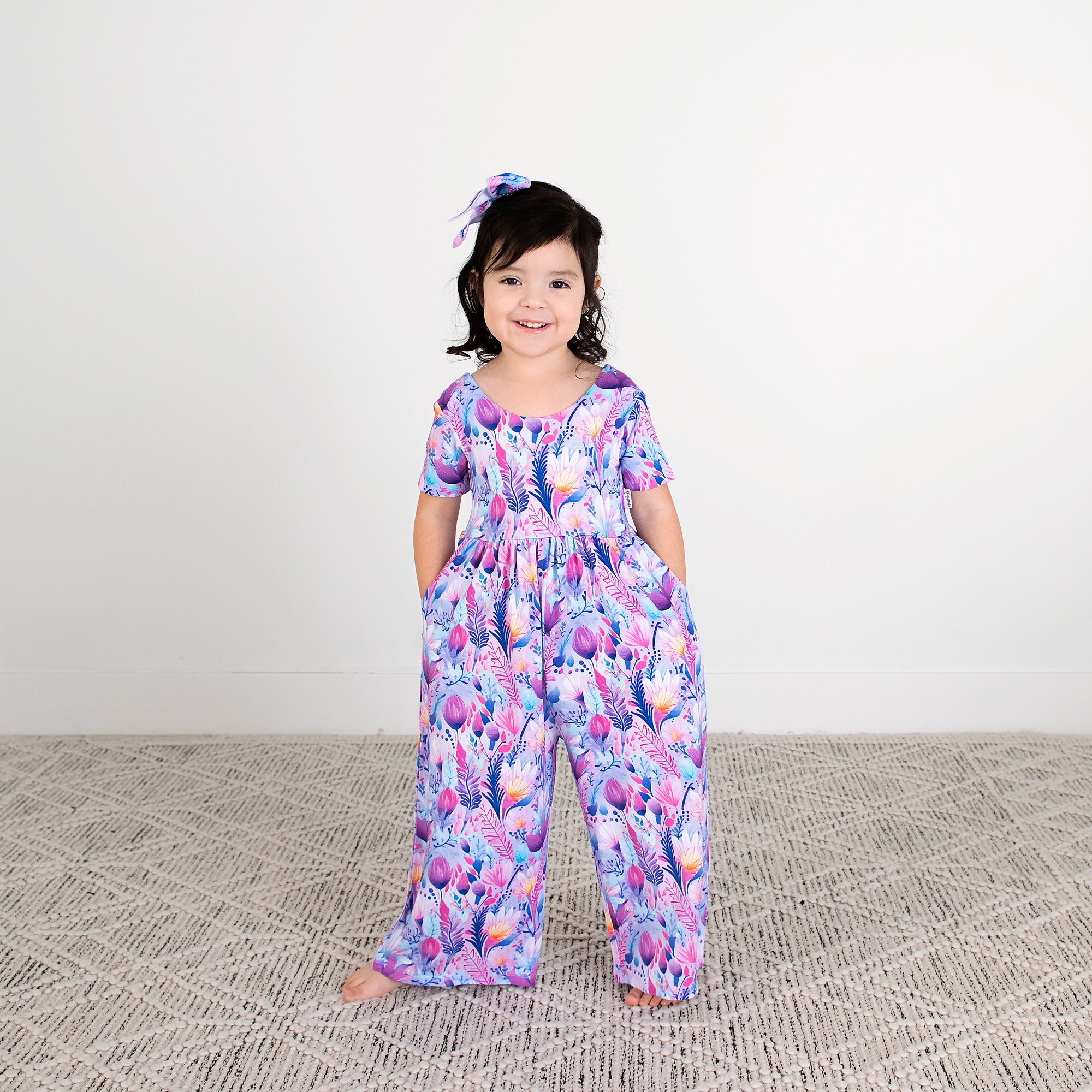Your little one will love the easy comfort of this wide leg romper. Made from luxuriously soft and breathable bamboo viscose, it has the perfect amount of stretch for play and everyday wear. The wide leg fit gives it a relaxed, stylish look while still keeping it practical and comfy.