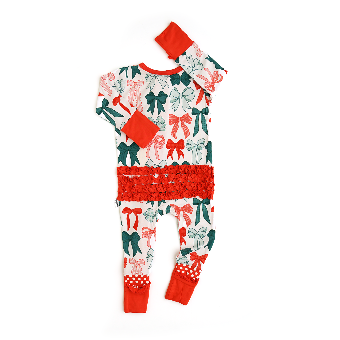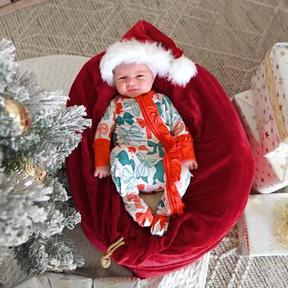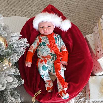 Mitten cuff on arm keeps baby from scratching, if needed. Fold-over foot at ankle can be used on chilly days when you forgot the socks! Please note: newborn size is footed.