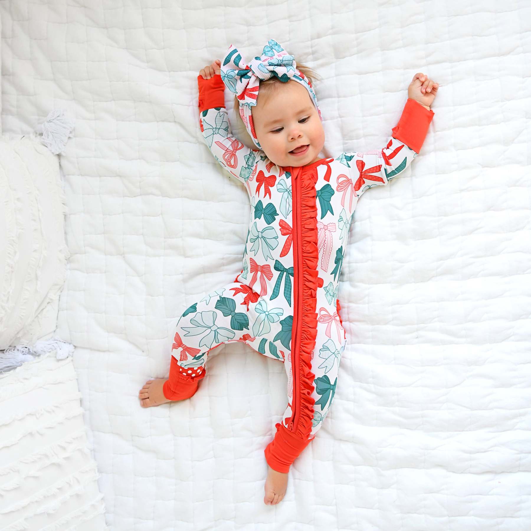 Due to manufacturing at different times, some Belle Bow Print items may have a slightly more pink-toned background than others. The difference is subtle but may be noticeable.