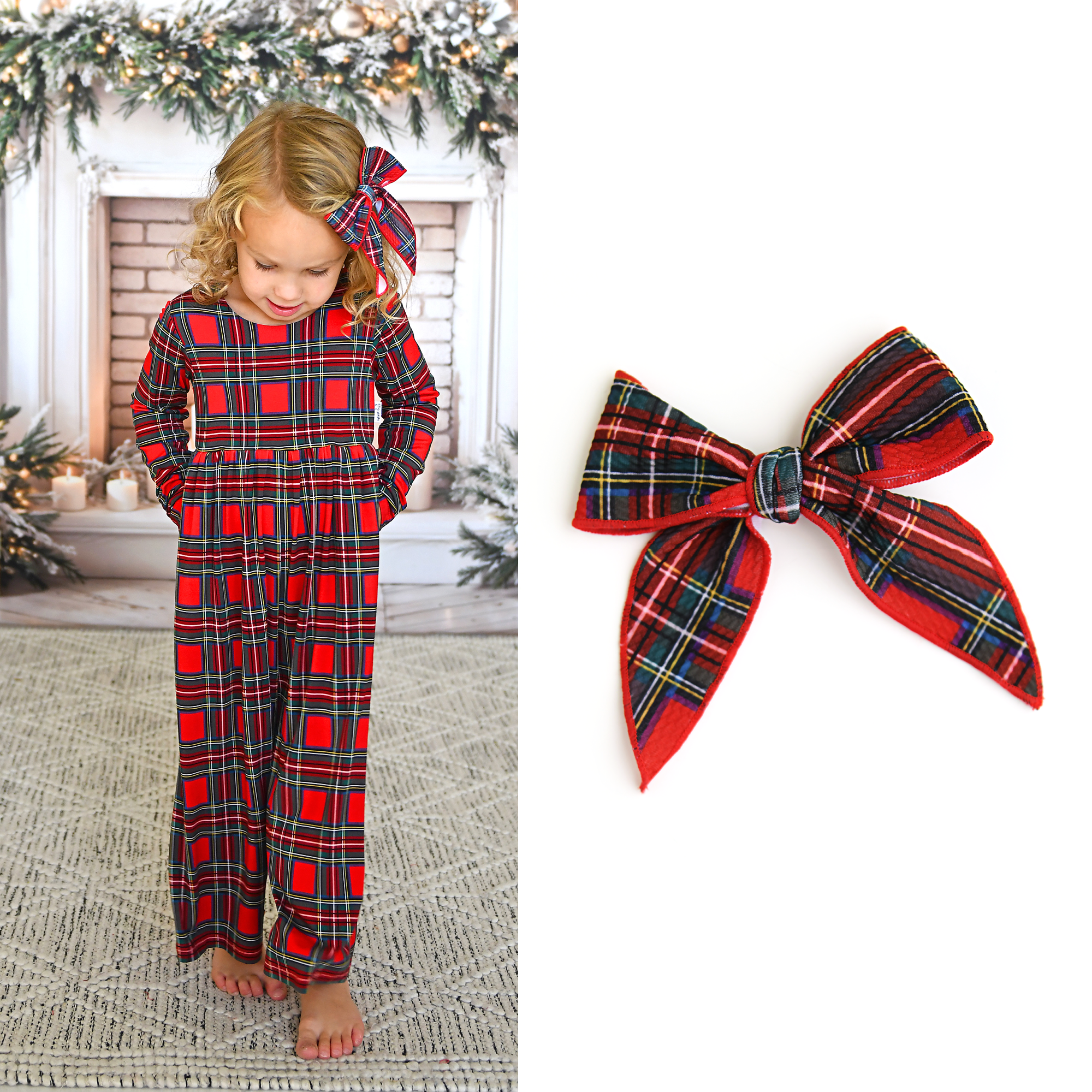 Our adorable clip bow is made from soft, textured bullet fabric and features a sturdy alligator clip on the back- ideal for side parts, ponytails, or any sweet hairstyle.