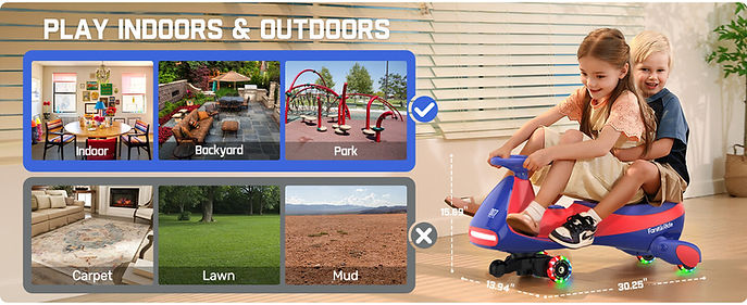 Electric wiggle car stimulate child's imagination and hands-on ability, and also cultivate children's hand-eye coordination, sense of balance. The ergonomically designed extra-large seat can accommodate two kids. This ride-on toy suitable for heights up to 69 inches, weight capacity of up to 150 pounds, so even adults can experience the fun of little ones.