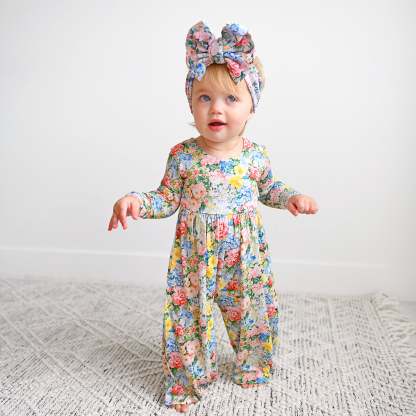 Your little one will love the easy comfort of this wide leg romper. Made from luxuriously soft and breathable bamboo viscose, it has the perfect amount of stretch for play and everyday wear. The wide leg fit gives it a relaxed, stylish look while still keeping it practical and comfy.